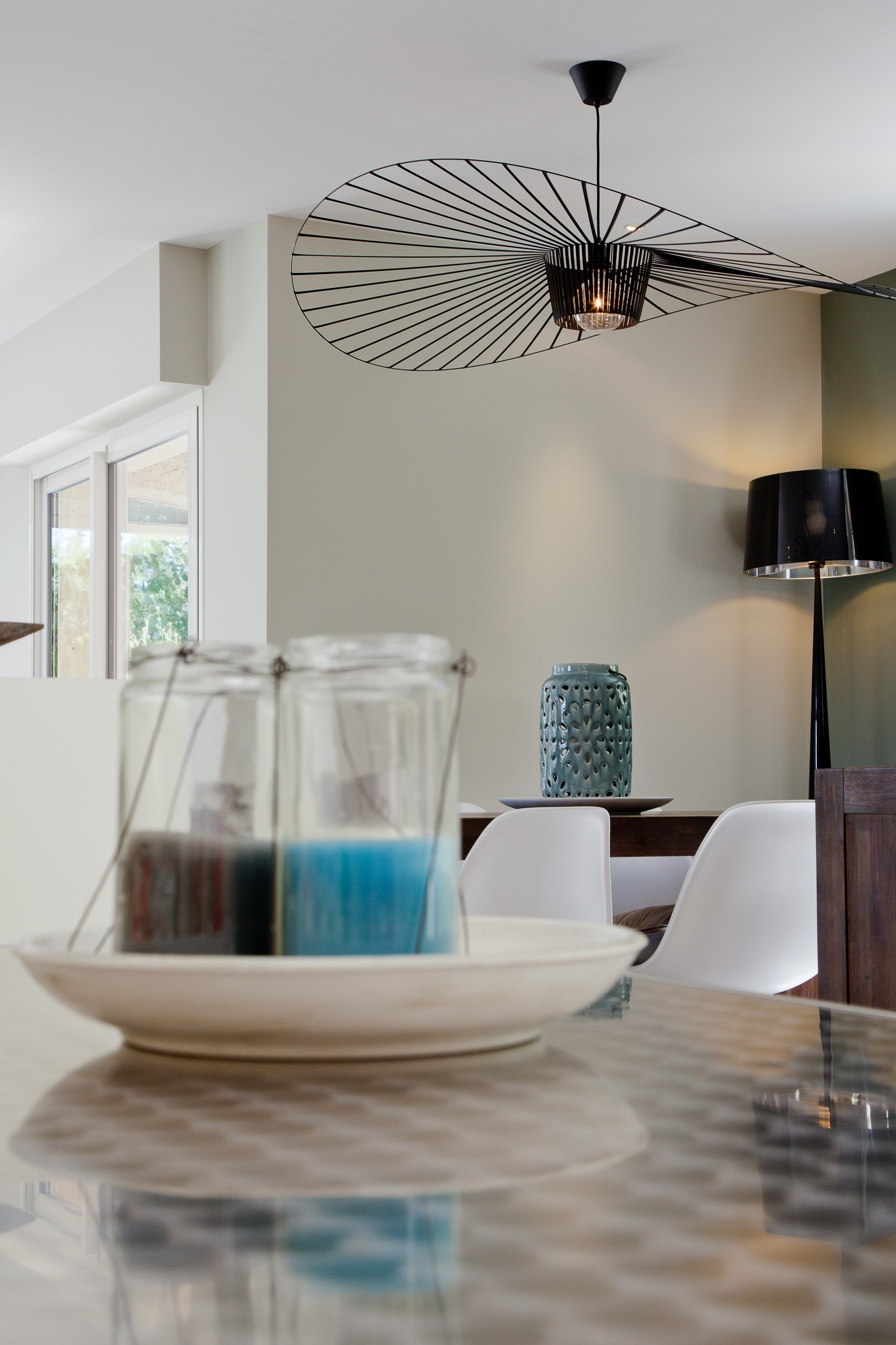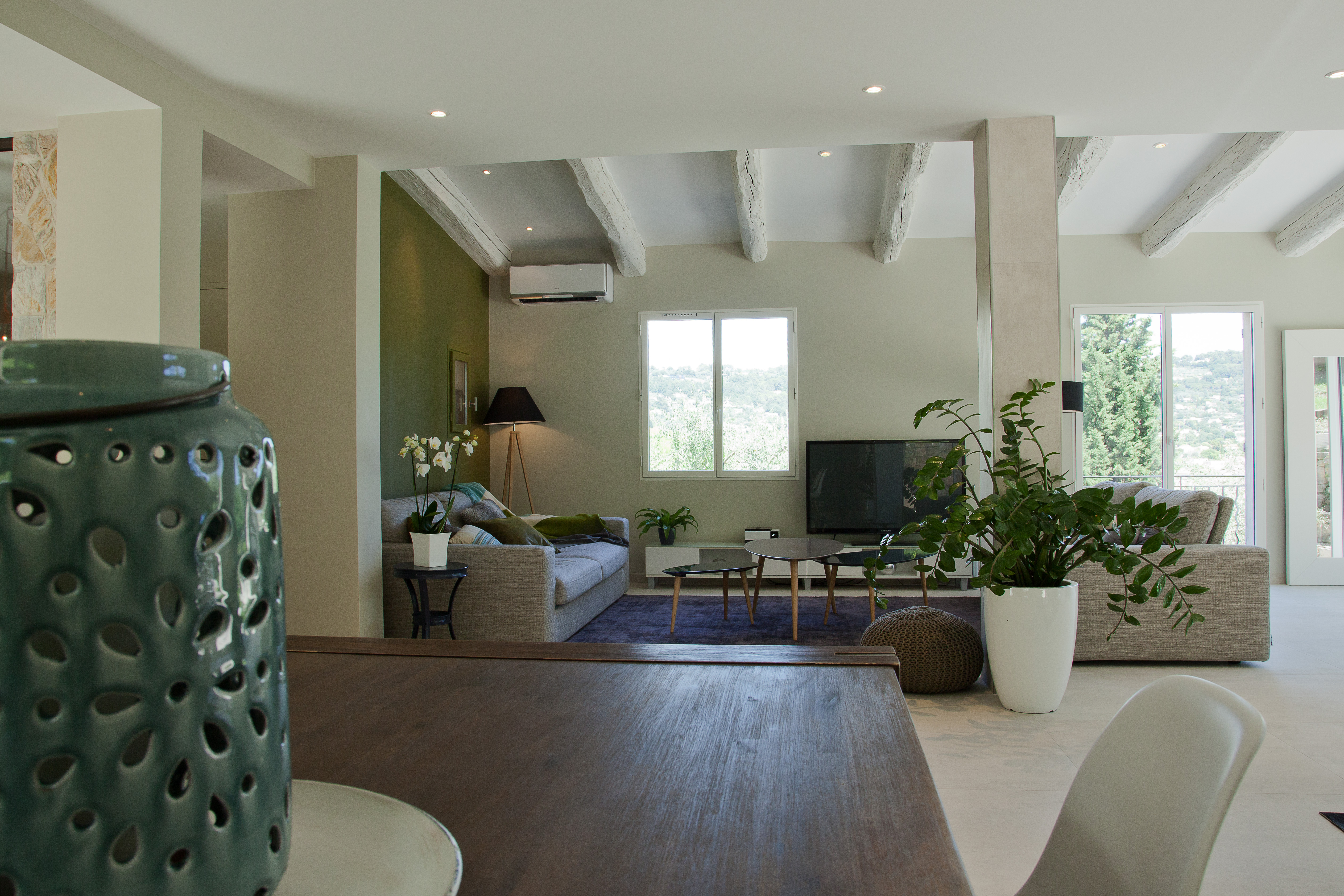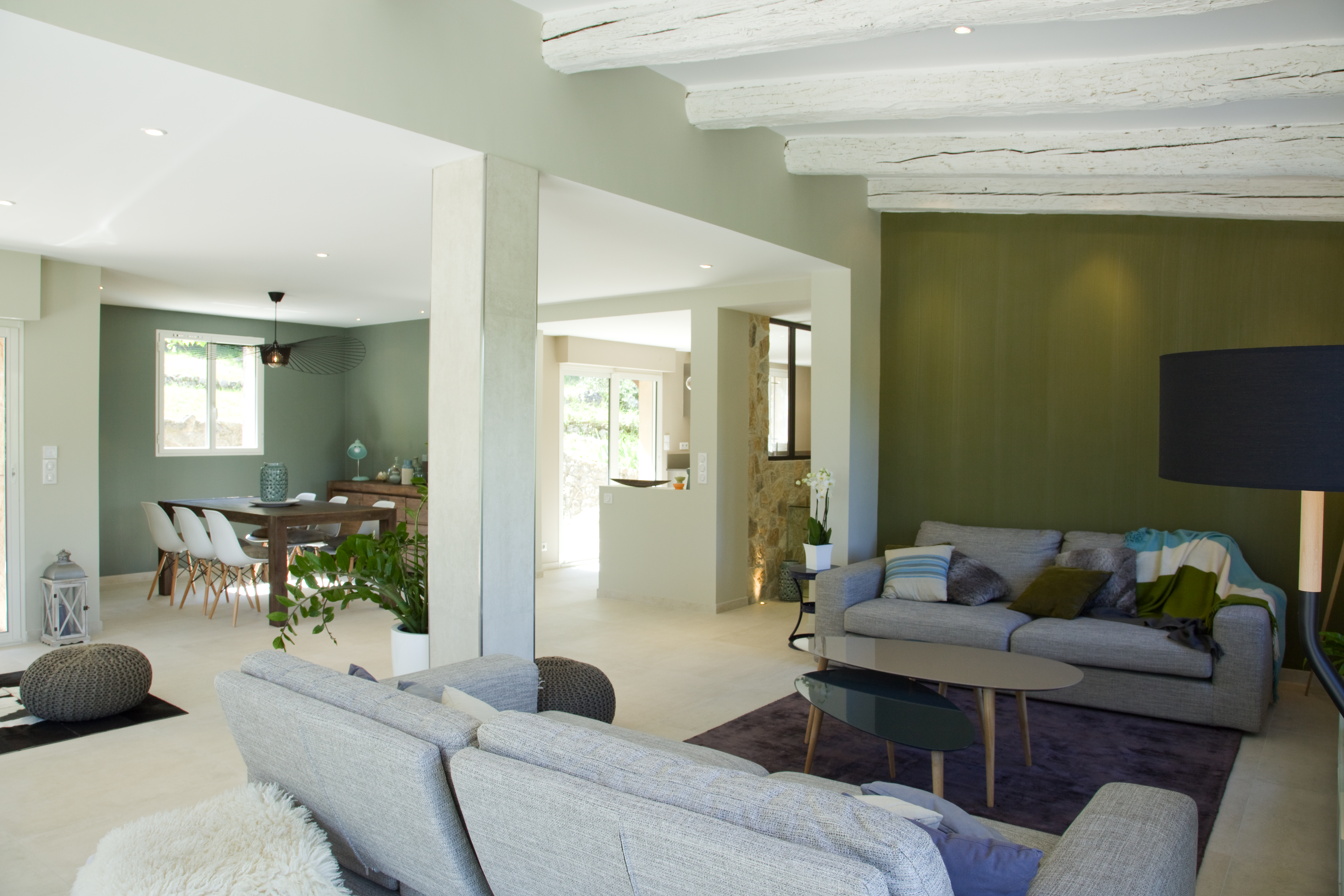 Villa néo provençale modernisée et redecorée en totalité. Pour cette villa faite de petites pièces nous avons choisi d’ouvrir les espaces et de les redistribuer complètement. Un vrai travail de zoning a été réalisé en même temps que la création d’une nouvelle identité décorative pour ce lieu de vie familial. Douceur, pureté, lumière, chaleur, mix and match de matières et mélange de coloris bleus et verts ont fait l’unanimité auprès des clients.