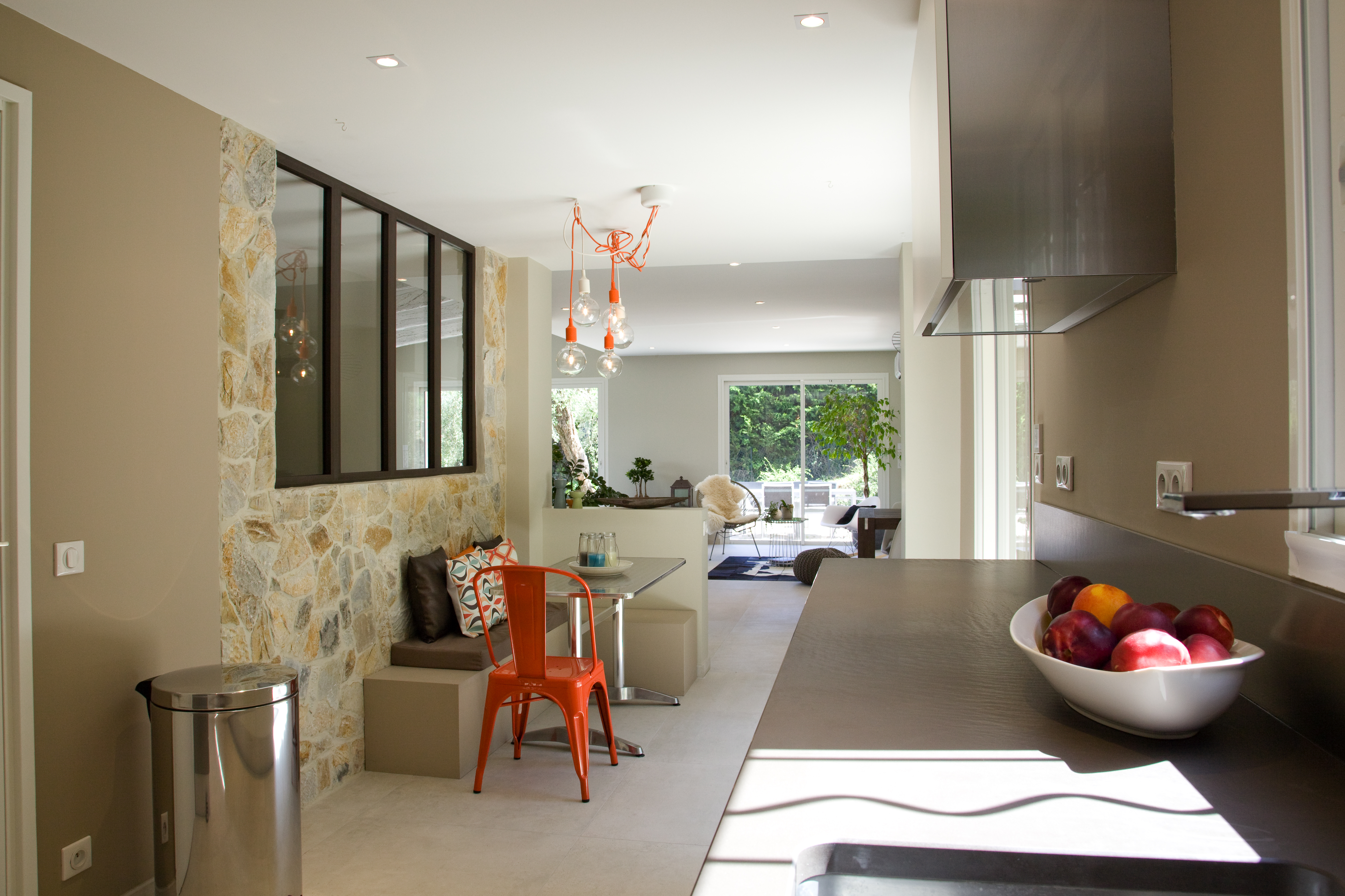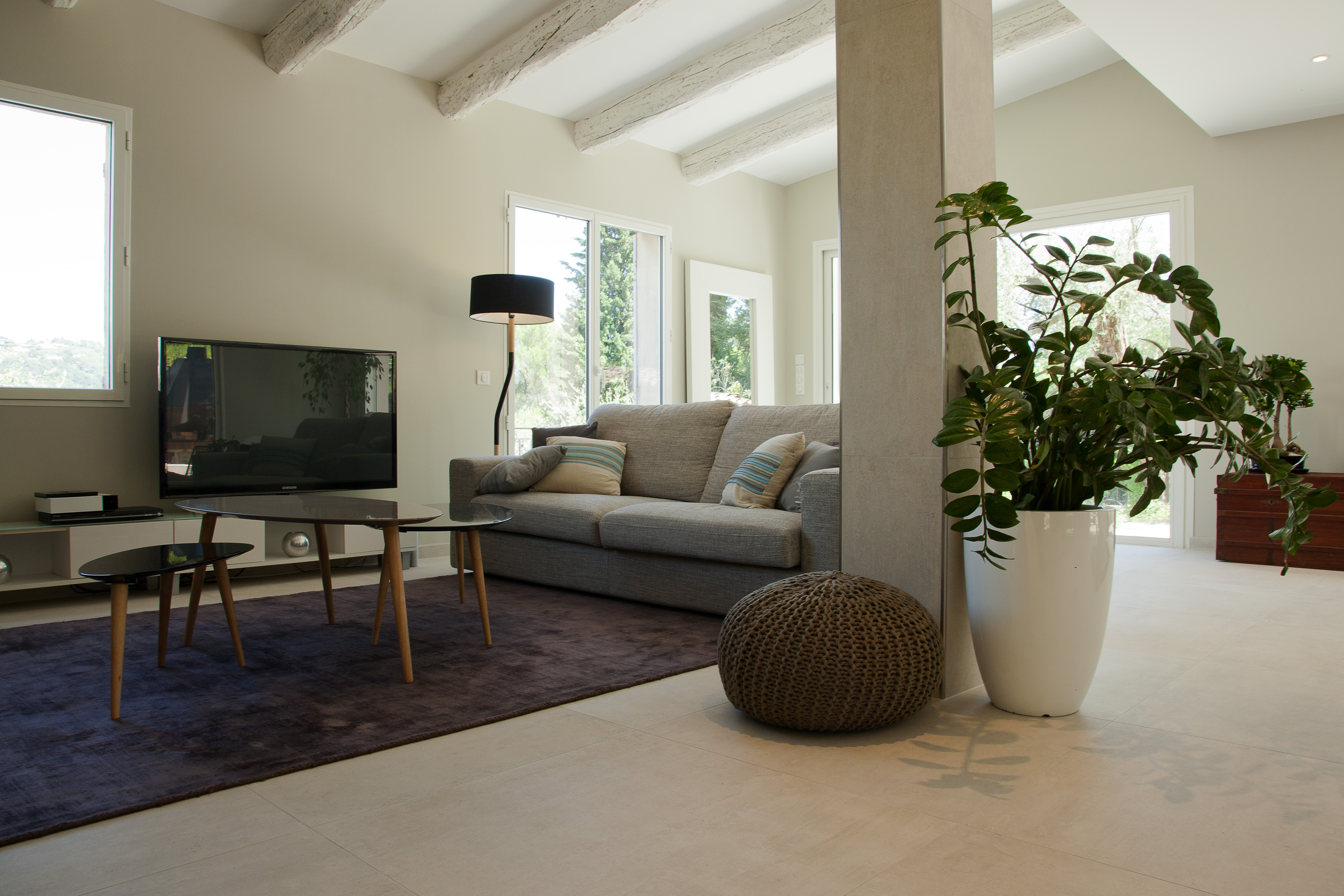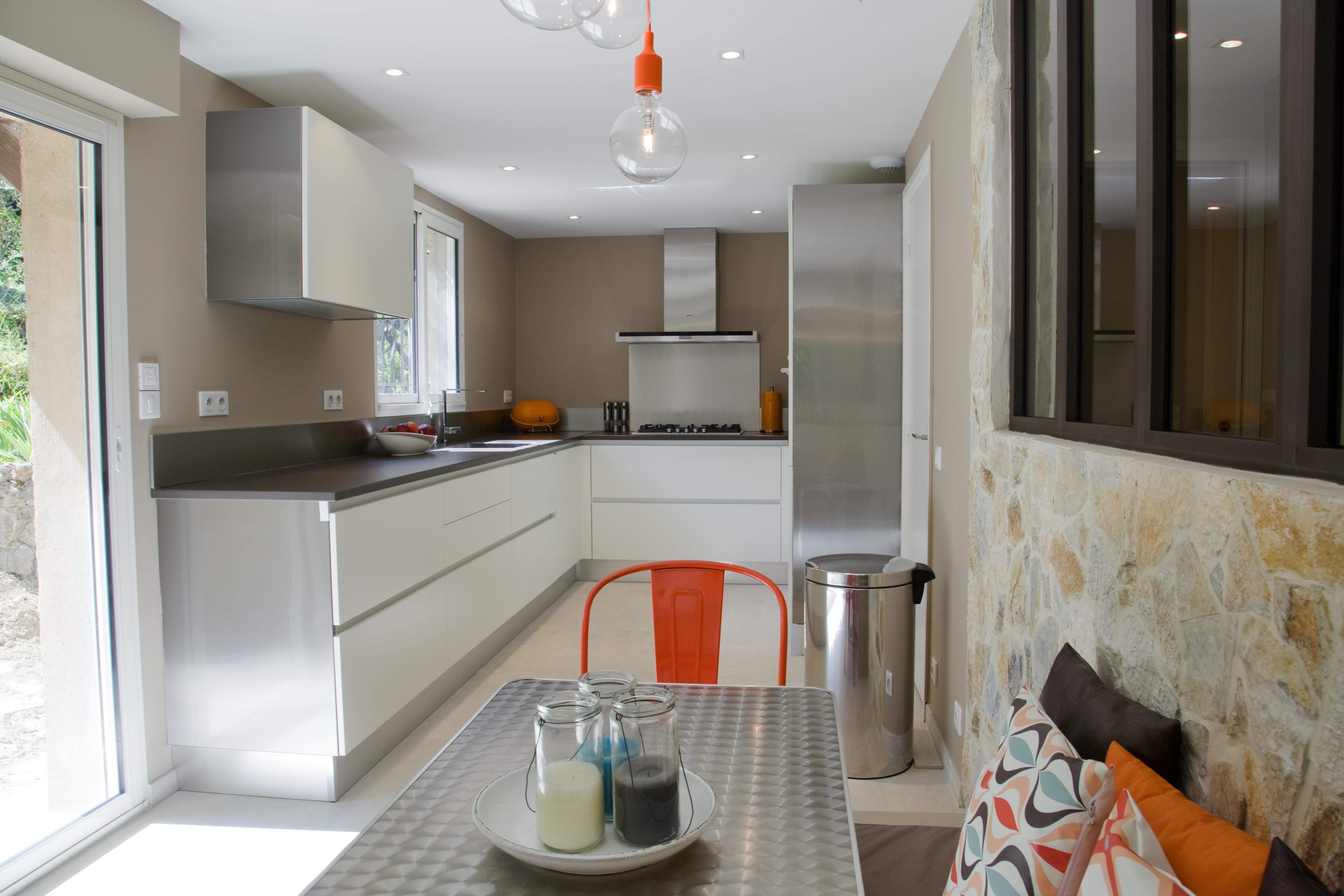 Villa néo provençale modernisée et redecorée en totalité. Pour cette villa faite de petites pièces nous avons choisi d’ouvrir les espaces et de les redistribuer complètement. Un vrai travail de zoning a été réalisé en même temps que la création d’une nouvelle identité décorative pour ce lieu de vie familial. Douceur, pureté, lumière, chaleur, mix and match de matières et mélange de coloris bleus et verts ont fait l’unanimité auprès des clients.